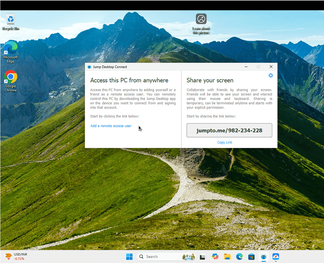 If you want to access this machine from another device, please visit the following page from that device: https://jumpdesktop.com/go